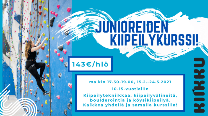 - Kurssi järjestetään yhteistyössä kiipeilyseura Kiikun kanssa. Ohjaajina toimivat kiipeilyseuran jäsenet.