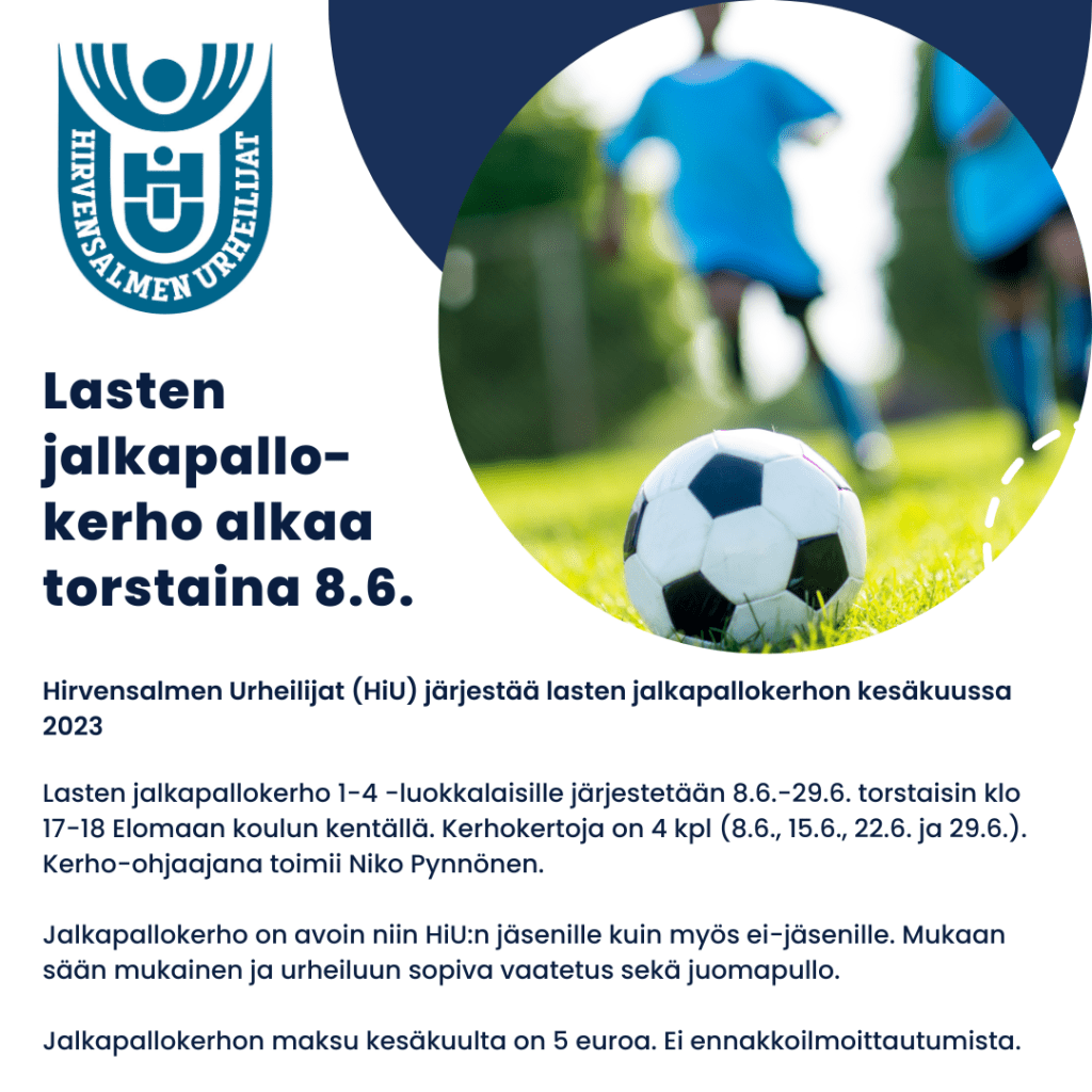 Hirvensalmen Urheilijat (HiU) järjestää lasten jalkapallokerhon kesäkuussa 2023