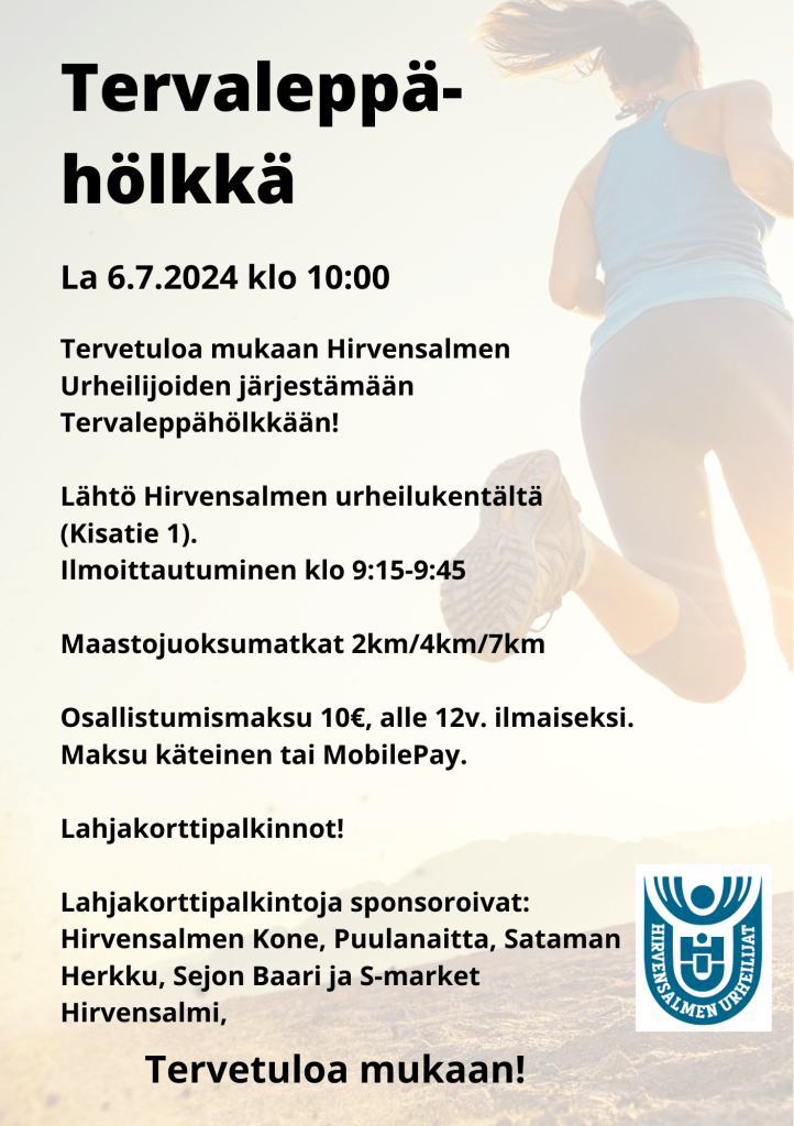 Tervetuloa mukaan Hirvensalmen Urheilijoiden järjestämään Tervaleppähölkkään la 6.7.2024 klo 10!